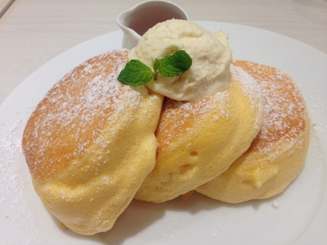 ふわふわパンケーキ♪添付のメープルシロップをかけてお召し上がりください。
